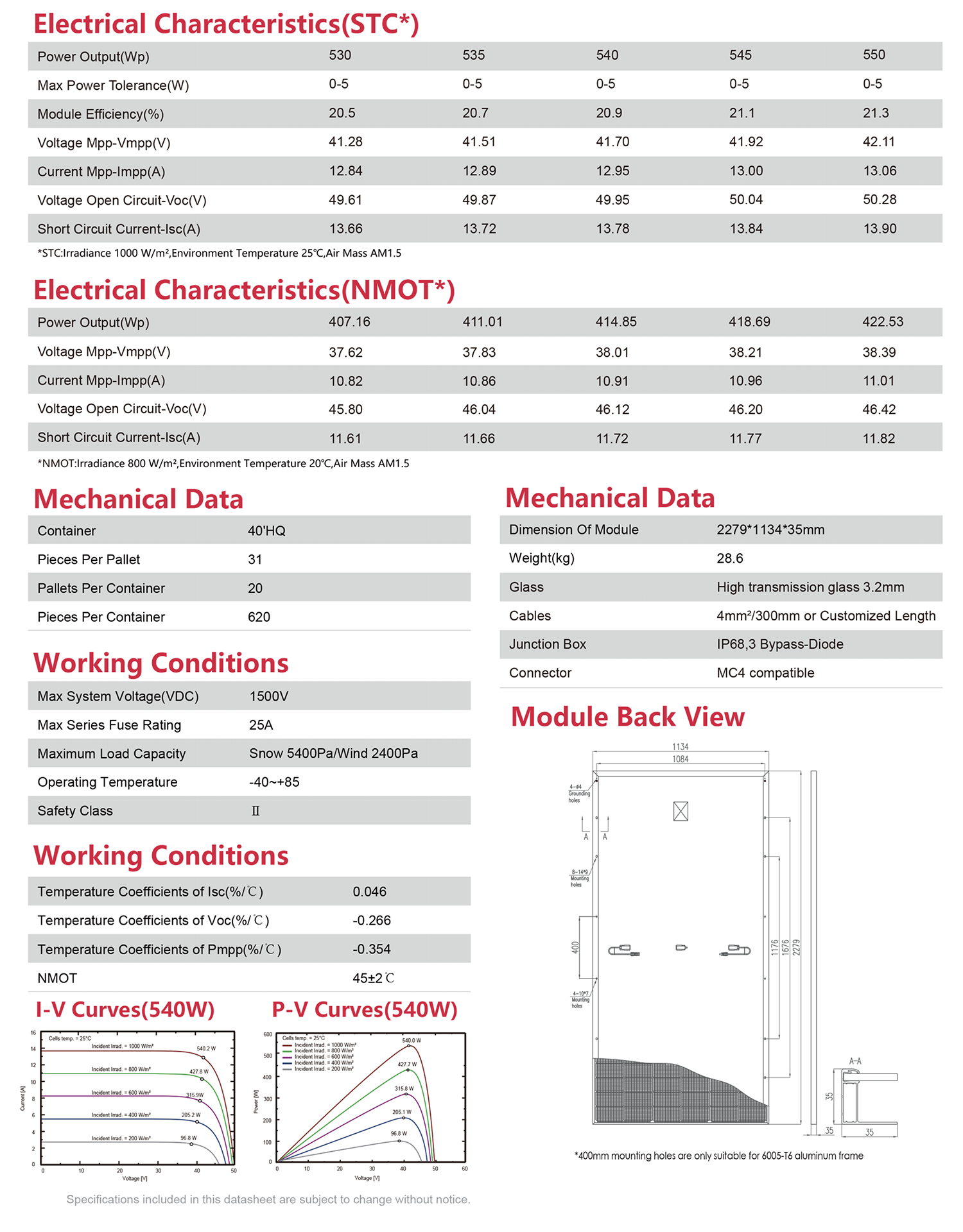 DEG-550W MBB Monocrystalline Module Half-cell Module M10-144 530~550W delivers high efficiency up to 21.3% with lower temperature coefficient, ideal for solar power plants and large-scale PV projects. Featuring MBB and half-cell technology, it ensures higher power output, reduced LCOE, and enhanced durability with salt mist and ammonia resistance, offering superior performance and reliability in demanding environments.More